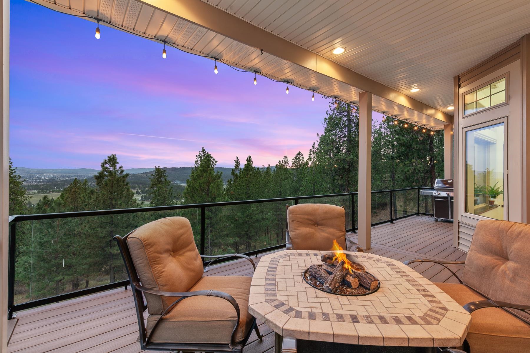 Daylight rancher on 5 acres with large shop at The Lookout--sought after for gated privacy, paved access, & stunning sunset views. Radiant-heated floors throughout the home, garage, and beneath the carpet, with main-floor living & a spacious primary suite. Floor-to-ceiling windows capture breathtaking sunsets & city lights of Liberty Lake. Home features 3 bedrooms, including additional primary suite with en-suite, all with walk-in closets. Secondary living space offers flexibility for entertaining & abundant storage. Standout feature: impressive 30x40 two-story shop with oversized door--ideal for car collecting, hobbies or extra storage. Heated attached 1,200 sq ft 3-car garage with additional woodshop/man cave/golf sim/flex space. Additional building location on property with water alr...